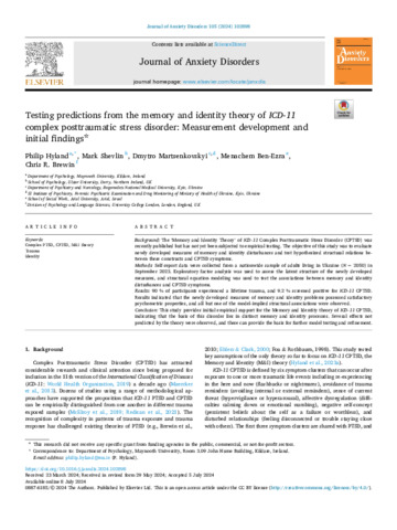 Title: | Testing predictions from the memory and identity theory of ICD-11 complex posttraumatic stress disorder: Measurement development and initial findings |