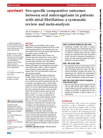 Title: | Sex-specific comparative outcomes between oral anticoagulants in patients with atrial fibrillation: a systematic review and meta-analysis |