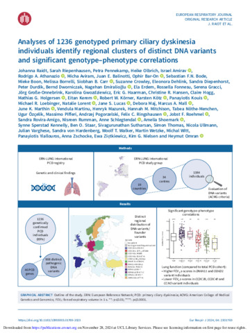 | Title: | Analyses of 1,236 genotyped primary ciliary dyskinesia individuals identify regional clusters of distinct DNA variants and significant genotype-phenotype correlations |