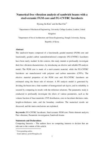 Title: | Numerical Free Vibration Analysis of Sandwich Beams with a Steel-Ceramic FGM Core and FG-CNTRC Facesheets |