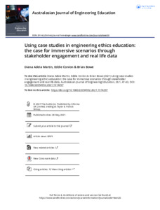 Title: | Using case studies in engineering ethics education: the case for immersive scenarios through stakeholder engagement and real life data |