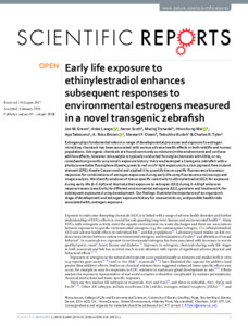 Title: | Early life exposure to ethinylestradiol enhances subsequent responses to environmental estrogens measured in a novel transgenic zebrafish |
