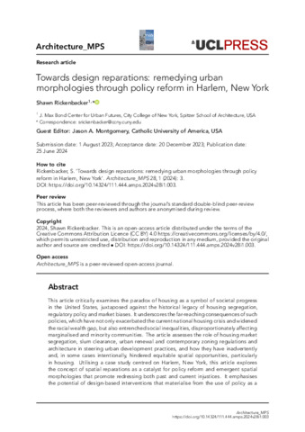 Title: | Towards design reparations: remedying urban morphologies through policy reform in Harlem, New York |
