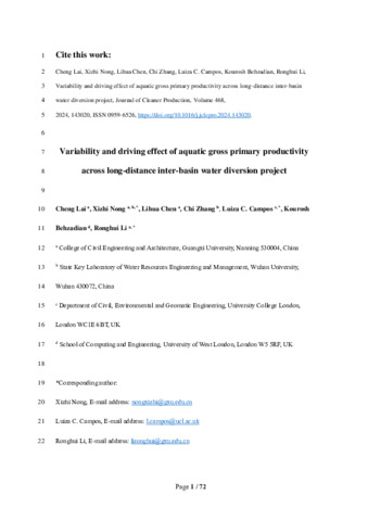 Title: | Variability and driving effect of aquatic gross primary productivity across long-distance inter-basin water diversion project |