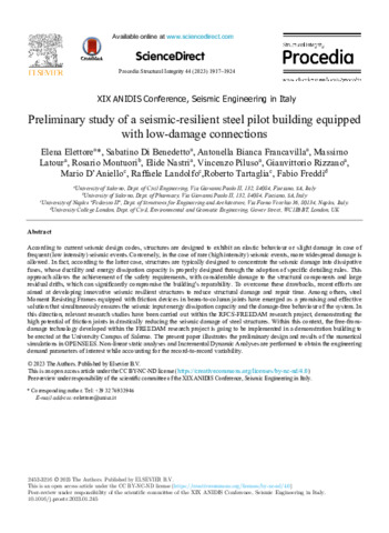 Preliminary study of a seismic-resilient steel pilot building equipped with low-damage connections.