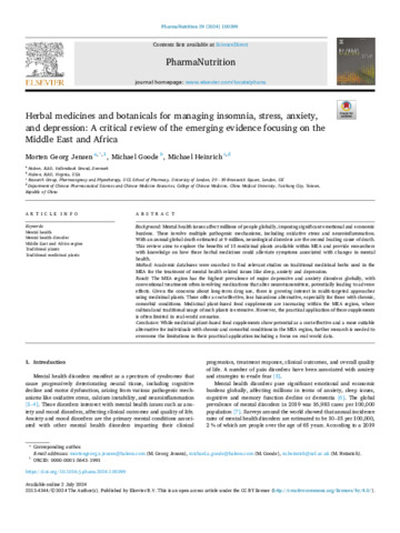 | Title: | Herbal medicines and botanicals for managing insomnia, stress, anxiety, and depression: A critical review of the emerging evidence focusing on the Middle East and Africa |