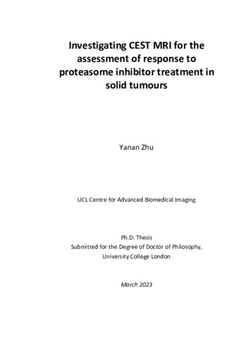 | Title: | Investigating CEST MRI for the assessment of response to proteasome inhibitor treatment in solid tumours |
