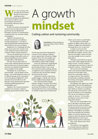 A growth mindset: cutting carbon and nurturing community, in : First Magazine, Local Government Association (LGA), June 2024, pp. 20-21.