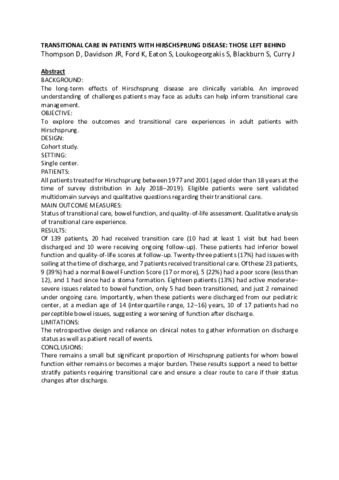 | Title: | Transitional Care in Patients With Hirschsprung Disease: Those Left Behind |