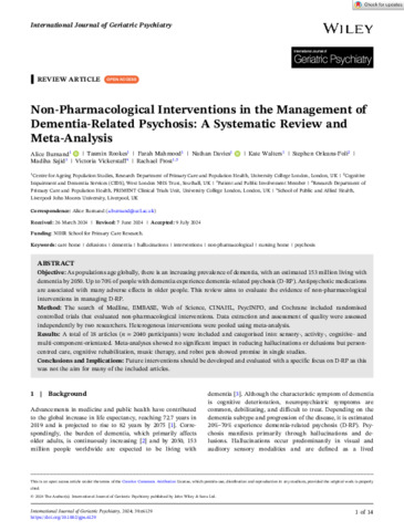 Title: | Non-pharmacological interventions in the management of dementia-related psychosis: a systematic review and meta-analysis |