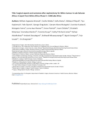 | Title: | Surgical aspects and outcomes after nephrectomy for Wilms tumour in sub-Saharan Africa: A report from Wilms Africa Phase II—CANCaRe Africa |