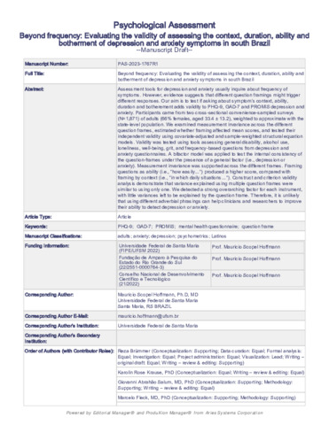 | Title: | Beyond frequency: Evaluating the validity of assessing the context, duration, ability, and botherment of depression and anxiety symptoms in South Brazil |