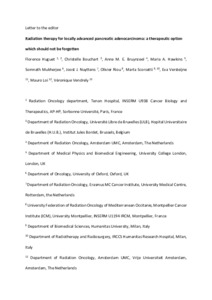 Title: | Radiation therapy for locally advanced pancreatic adenocarcinoma: a therapeutic option which should not be forgotten. Letter to the Editor regarding: “Pancreatic cancer: ESMO Clinical Practice Guideline for diagnosis, treatment and follow-up” by Huguet et al. |