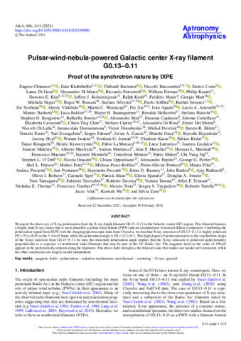 | Title: | Pulsar-wind-nebula-powered Galactic center X-ray filament G0.13–0.11 |