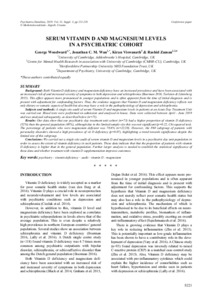 | Title: | Serum Vitamin D and Magnesium levels in a psychiatric cohort |