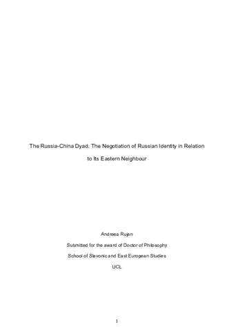 Title: | The Russia-China Dyad. The Negotiation of Russian Identity in Relation to Its Eastern Neighbour |