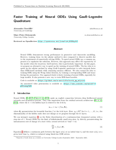 Title: | Faster Training of Neural ODEs Using Gauß-Legendre Quadrature |