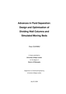 | Title: | Advances in Fluid Separation: Design and Optimisation of Dividing Wall Columns and Simulated Moving Beds |