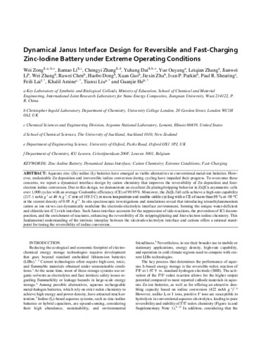 Title: | Dynamical Janus Interface Design for Reversible and Fast-Charging Zinc–Iodine Battery under Extreme Operating Conditions |