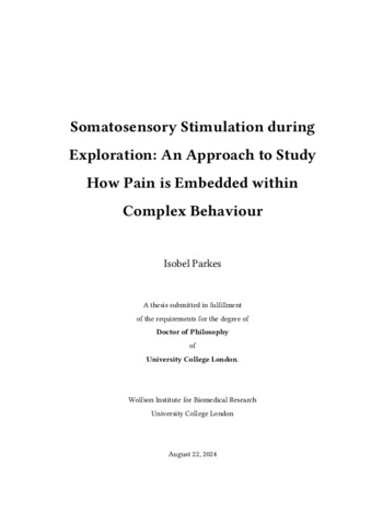 | Title: | Somatosensory Stimulation during Exploration: An Approach to Study How Pain is Embedded within Complex Behaviour |