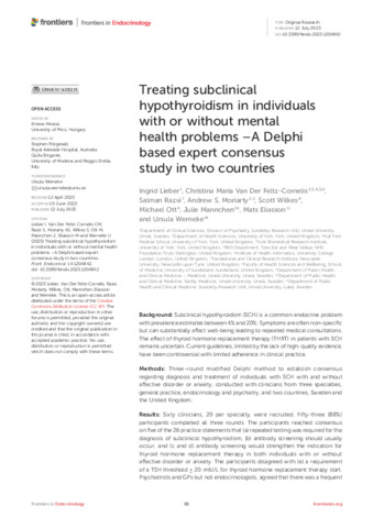 Title: | Treating subclinical hypothyroidism in individuals with or without mental health problems –A Delphi based expert consensus study in two countries |
