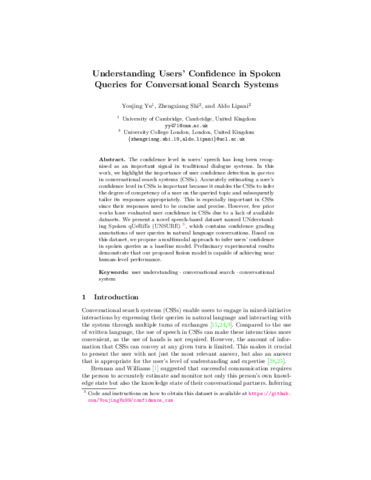 | Title: | Understanding Users’ Confidence in Spoken Queries for Conversational Search Systems |