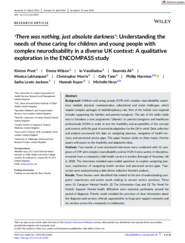 Title: | ‘There was nothing, just absolute darkness’: Understanding the needs of those caring for children and young people with complex neurodisability in a diverse UK context: A qualitative exploration in the ENCOMPASS study |