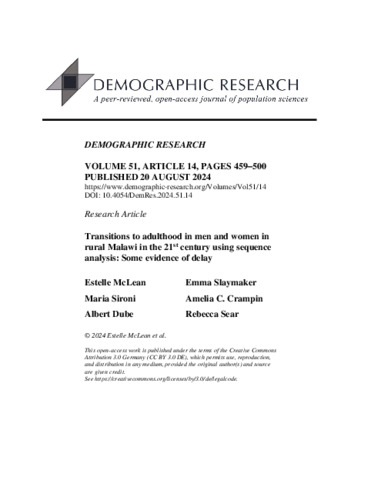 | Title: | Transitions to adulthood in men and women in rural Malawi in the 21st century using sequence analysis: Some evidence of delay |