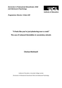 | Title: | “It feels like you’re just plastering over a crack” The use of reduced timetables in secondary schools |