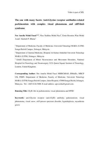 Title: | The One with Many Facets: Anti-Glycine Receptor Antibodies-Related Parkinsonism with Complex Visual Phenomena and Stiff-Limb Syndrome |