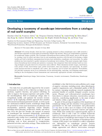 | Title: | Developing a taxonomy of soundscape interventions from a catalogue of real-world examples |