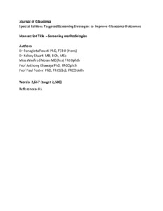 Foster_JoG - Glaucoma Screening Manuscript - Screening methologies V3 submitted.pdf Download (460kB) | Preview |