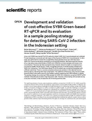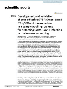 | Title: | Development and validation of cost-effective SYBR Green-based RT-qPCR and its evaluation in a sample pooling strategy for detecting SARS-CoV-2 infection in the Indonesian setting |