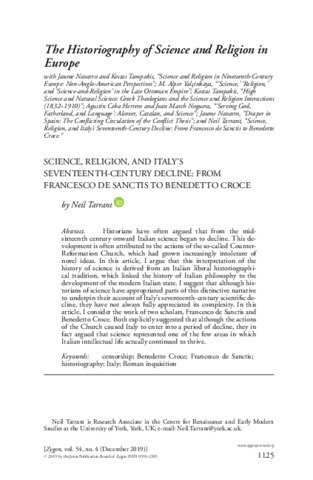 Science, Religion, and Italy's Seventeenth-Century Decline: From Francesco de Sanctis to Benedetto Croce.