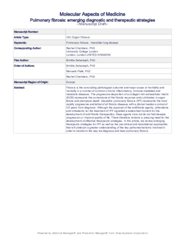 Title: | Pulmonary fibrosis: Emerging diagnostic and therapeutic strategies |