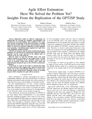 Title: | Agile Effort Estimation: Have We Solved the Problem Yet? Insights from the Replication of the GPT2SP Study |
