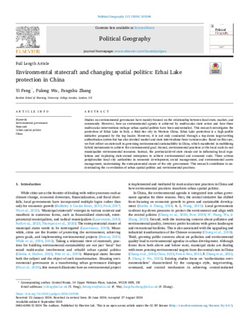 Title: | Environmental statecraft and changing spatial politics: Erhai Lake protection in China |