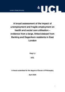 Title: | A broad assessment of the impact of unemployment and fragile employment on health and social care utilisation – evidence from a large, linked dataset from Barking and Dagenham residents in East London |