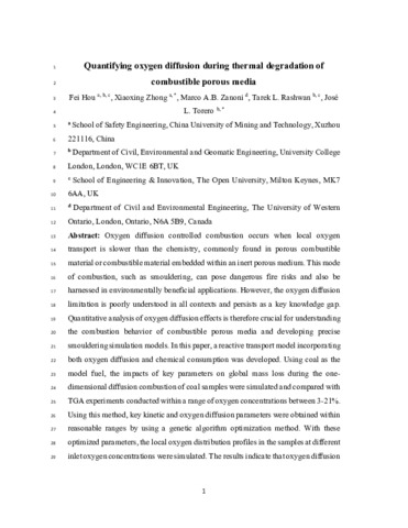 Title: | Quantifying oxygen diffusion during thermal degradation of combustible porous media |