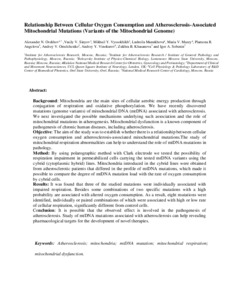Relationship between Cellular Oxygen Consumption and Atherosclerosis-associated Mitochondrial Mutations (Variants of the Mitochondrial Genome).