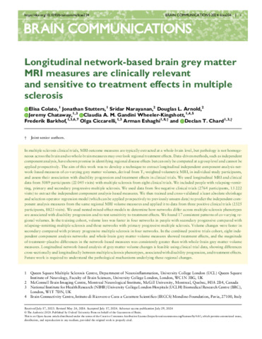 Longitudinal network-based brain grey matter MRI measures are clinically relevant and sensitive to treatment effects in mult.pdf - Published Version Download (1MB) | Preview |