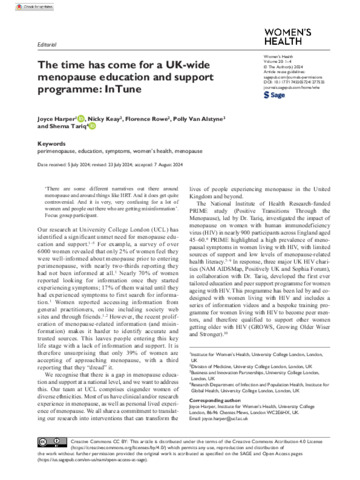 | Title: | The time has come for a UK-wide menopause education and support programme: InTune |