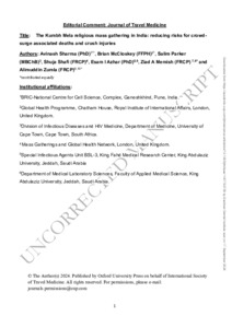 Title: | The Kumbh Mela religious mass gathering in India: reducing risks for crowd-surge associated deaths and crush injuries |