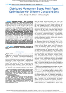 | Keywords: | Distributed optimization, multi-agent networks, heavy-ball momentum, sub-gradient averaging consensus |