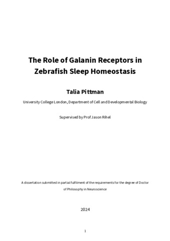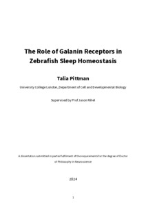 | Title: | The Role of Galanin Receptors in Zebrafish Sleep Homeostasis |