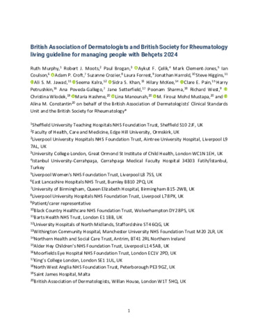 Title: | British Association of Dermatologists and British Society for Rheumatology living guideline for managing people with Behçets 2024 |