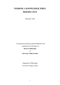 My dissertation explores the relationship that wisdom has to knowledge. Towards this, throughout the chapters, I identify certain features that are characteristic of wisdom – e.g., wise agents are good advice givers, open-minded, reflective, unbiased etc – and discuss in what ways knowledge and similar themes central to epistemology can help explain those characteristics of wisdom. Accordingly, I have termed my account of wisdom ‘knowledge first’. It is knowledge first in the sense that knowledge is explanatorily fundamental in explaining the nature of wisdom. More specifically, I defend a view that I call epistemic essentialism which claims that, inter alia, knowledge necessarily consists of the reductive base of wisdom. Given this, the knowledge first picture of wisdom I shall develop in my dissertation is something as follows. Firstly, I shall demonstrate that knowledge is necessary for wisdom in two different forms – wisdom taken as a trait of character, and wisdom taken as a property of actions. Secondly, I shall use this intimate relationship between wisdom and knowledge to shed light on knowledge itself by demonstrating that wisdom is an interesting case of KK failure. Finally, given that wisdom is a case of KK failure, a puzzle concerning wisdom arises related to it being a stable disposition of character. I shall attempt to solve this puzzle by appealing to the idea of skilful reflection – which again is related to knowledge – which in turn sheds new light on wisdom’s relationship to knowledge.
