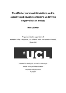 | Title: | The effect of common interventions on the cognitive and neural mechanisms underlying negative bias in anxiety |