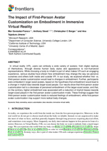 Title: | The impact of first-person avatar customization on embodiment in immersive virtual reality |