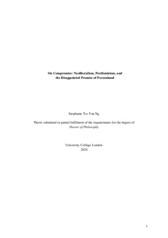 Title: | On Compromise: Neoliberalism, Postfeminism, and the Disappointed Promise of Personhood |